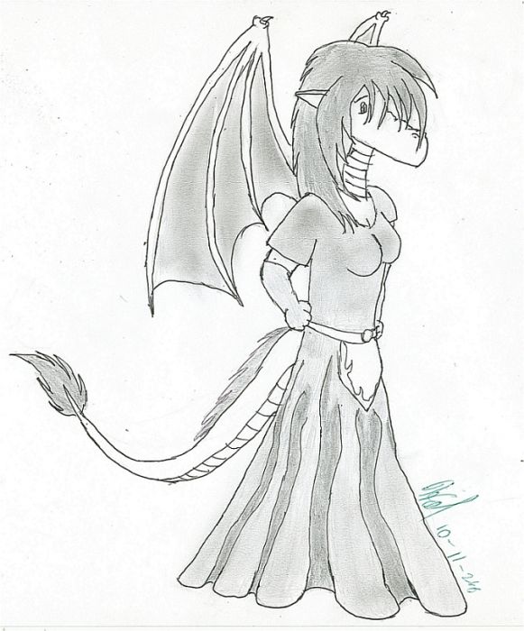 This is my contribution to whtdragon's recent challenge, but first, an obligatory statement: whtdragon, I give you full permission for a retaliatory picture, all I ask is that you not be too angry with me over this picture. This is actually only half of a more complex image I wanted to put together for the aforementioned whtdragon challenge, but the other half never really came together for me so I figured I may as well post the important part and just forget the rest. Since I'm not good with color yet, I chose to do a pencil shade, but I do have the line art of this scanned, though I won't be coloring it myself any time soon. This picture would make more sense with the other half, but I think it still looks nice.