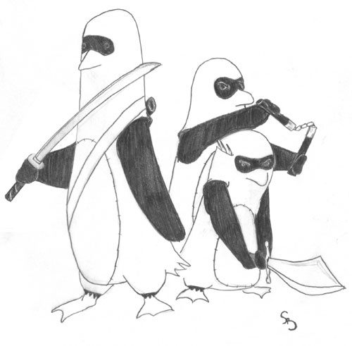 - katana, ninja, numchucks, nunchaku, penguin, sword