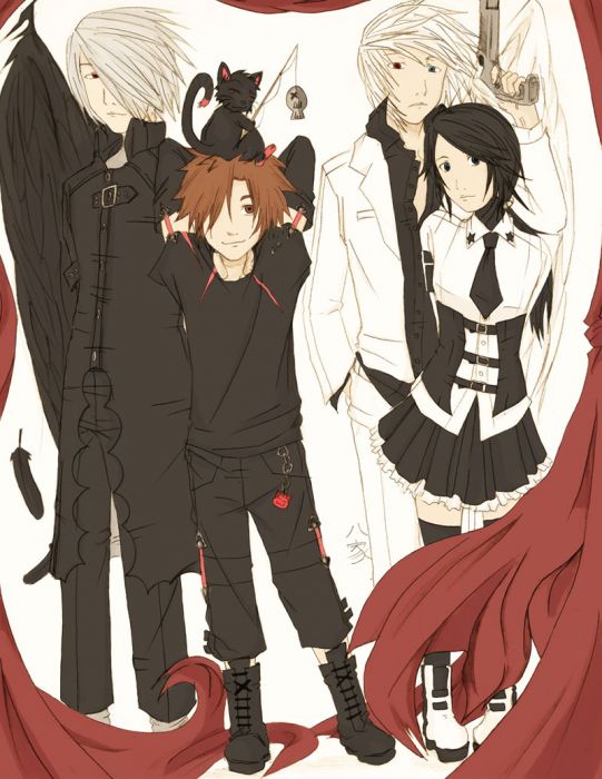 FINALLY! lol, this one took me a butt load of time to finish (mainly because i had school, :sigh:...school...) well anywho, this is a request from tsubasayohko! yay! :clap clap:! ok so this is tsubasayohko's OCs. Introduction from left to right-Sashi,Kai(and "evil cat of doom"),Tsudo(that dude in the back with the gun),and Tsume (the chick) yay, these characters have an awsome story to em but you'll have to ask tsubasayohko if u want to know more about them! thanks guys! P.S. HIGH RESOLUTION IS THE WORD!