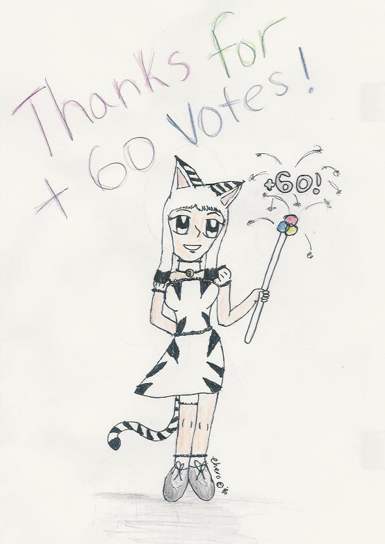 Well I just looked at the number of votes I had the other day and realized I had 62....I was too late to make a 50 votes thank you pic like everyone else. So....60 instead! ^_^; Hope you like this picture and thanks for the votes and comments! Keep voting! Maybe someday I'll catch up with my friends who have already surpassed 60. ^_^ ~Chero~