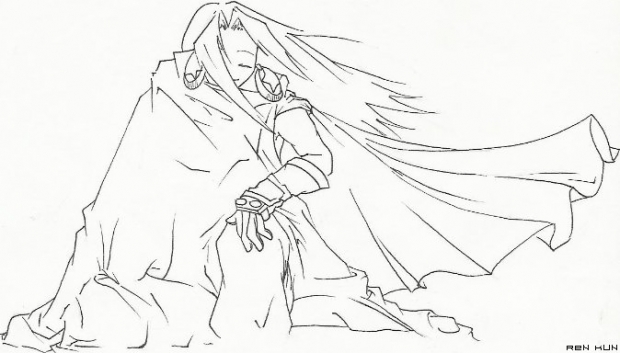 This is part of a thank you card for my friend...also, I was practicing folds on cloaks...^^ I think I'll have to color this one too...xD
