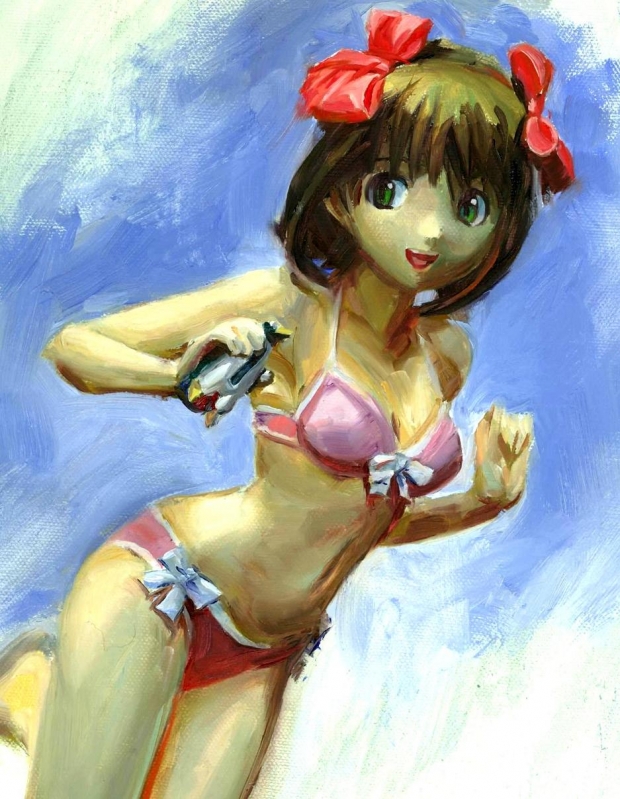 This is an oil study of a figurine of Asuka Amami from Idolmaster.