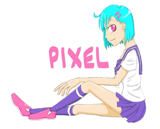 This is my character, Pixel. She was created just a few days ago when i was messing around in my corel essentials program. This is one of my first real digital art pictures. And I was just practicing with certain tools and what not. I have a long way to go in the field. But i do think im improving. =D