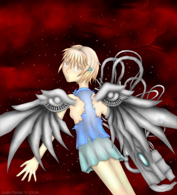 Chise from Saikano, after yet another battle. (or would that be massacre? ^.^) Sketched in pencil, CG'ed in Adobe Photoshop 6.0. =^^=