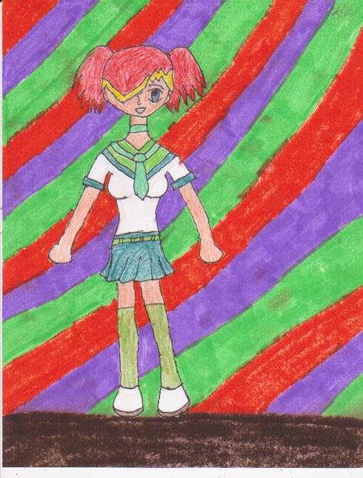 this is Emily's friend, Kara. Shes 18 years old,and shares Emily's interests in vampires and angels. Shes wearing they're school uniform in this picture.