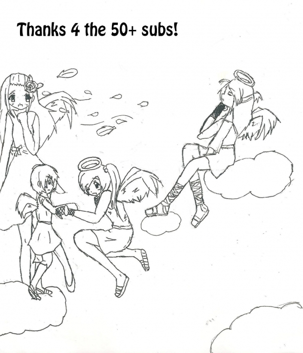 YOZ!!!! haven't subitted in a while.... here's meh 50 subs pic....er...draft....will make line art and/ or colored pic!!! ...I can't seem to keep the mouse straight XD Yeah messy...