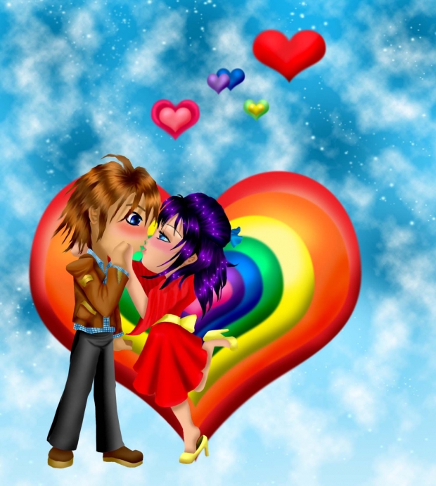 - clouds, day, hearts, love, rainbow, romance, valentines