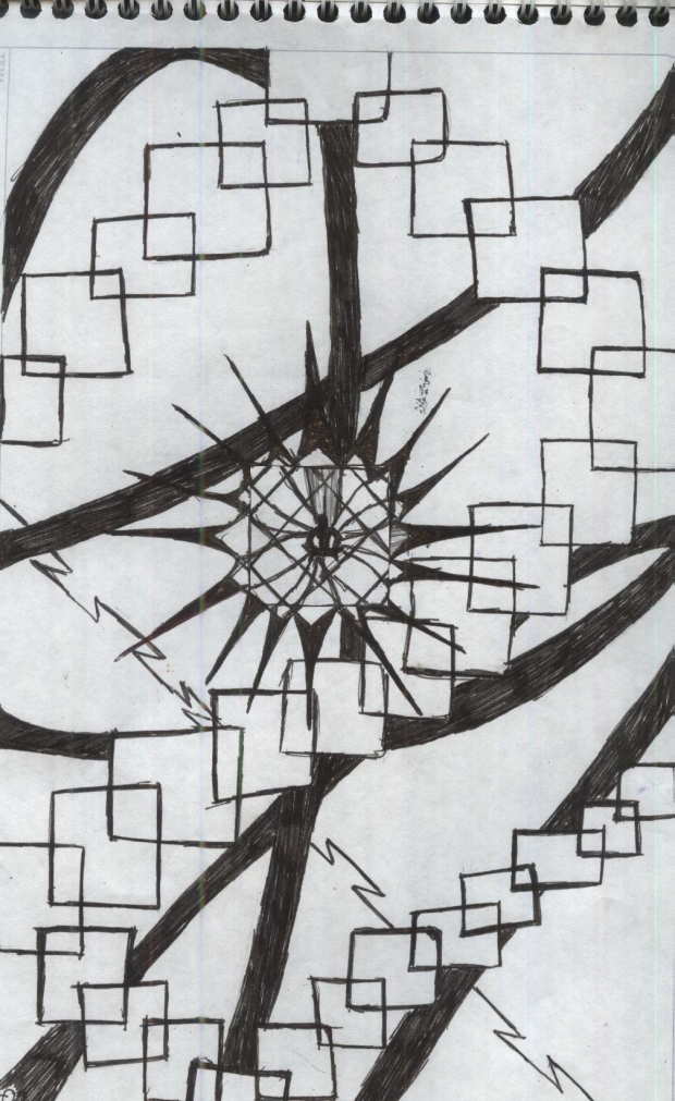 this is another old drawing of mine this one brings back memories (i think i might put it on my world) anyway i said that because i inspire in my mind im one of those persons that are really messy but centered i mean meassy but at the same time i got a strict order of life and principles and how even thought the most of my thoughts are going forth and back in my head some of them like things i should remember are stuck as file papers floating around my brain