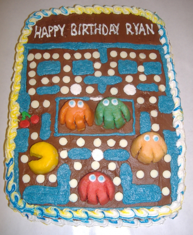 Soooo...this is a Pac-Man cake I made for my friend's birthday. :)