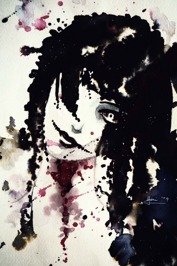 This was pretty random but a lot of fun to do, especially after midnight! XD I find it hard to paint eyes with watercolour as I don't have a smaller brush... I wanted to make a bloody black tear but ehh I messed up as always.