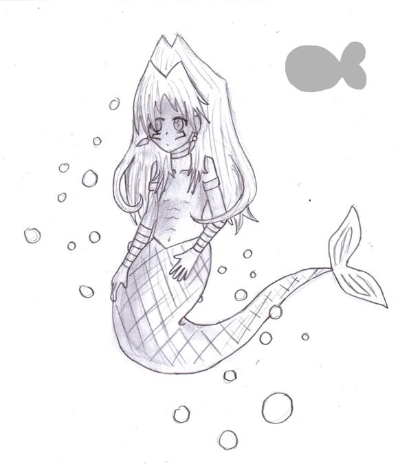 I had a dream that they were going to show pictures of Marik as a mermaid on the breakfast news, but I woke up before it happened, so I then decided to draw it insteed. *humph* whenever I do a good copy of a picture, it always turns out funny looking. But the other one is all smudged so it's in no fit state to be submitted. Oh well, at least the fish fits in with the picture!