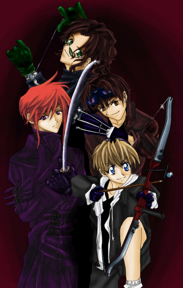 - aya, ken, knigth hunter, omi, weiss, weiss kreuz, yohji
