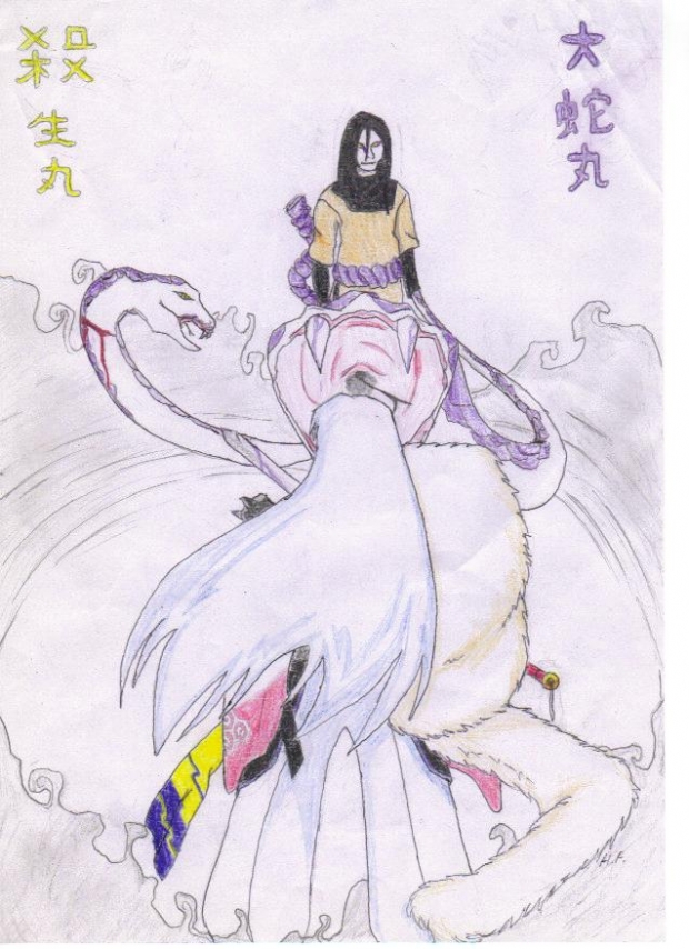 a requested drawing from my bf, he asked me to draw orochimaru fighting sesshoumaru. Took me about 4 hours, first time attempting at drawing a snake, I think it turned out decent though. comments appreciated.![]()
