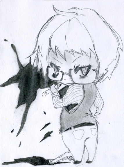 This Giovanni from the DOGS manga. I don't know if can notice, but there's a gun at his feet and you can guess what happened from there. I don't want to offend anyone with my explanation of it. Sooooooooooo he's got that pencil to represent! Whoot whoot REPRESENT. Traditional art that is