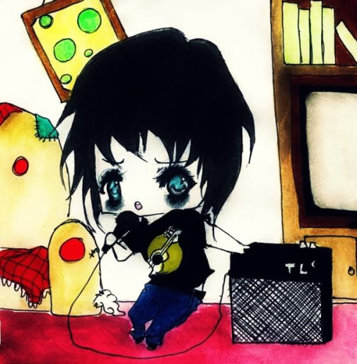 - chibi, guitar, oc, original, teapot domescam, tristin