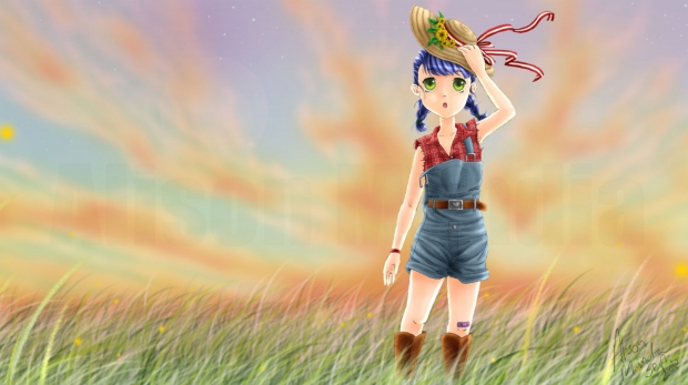 - alison mandia, anime, feild, girl, rein akira, spirit, sunset, young, young spirit