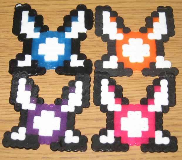 Perler Bead Sprites of Fairies from the Zelda:Oracle games. The first one I did was the traditional blue, followed by the orange and then the pink and purple one. You can see me getting better with each one, which I enjoy. Tangible progress ftw!