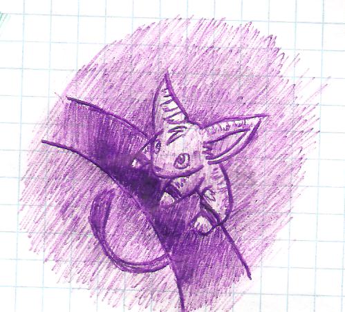 This is a quick drawing that I did in maths (Obvious by the grid paper), drawn and shaded completely by a purple pen. I tend to draw creatures like this a lot - lemur/cat like things and for no real reason other than my own enjoyment. My teachers hate me for it^^