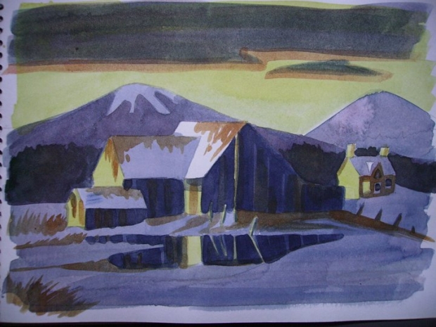 - , blue, branch, cloud, colour, draw, paint, practice, red, scenery, tree