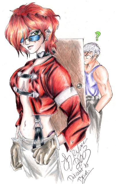 Third picture in my cosplaying series, Mara in Yashiro's costume. >_o This was a gift to my boyfriend, who role-plays Yashiro with me. He's Mara's main squeeze in our storyline.