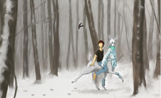 The two characters in the background are Jack, and Haru (The deertaur). They're from one of my original stories that I've been fiddling with for some time now. I may or may not get into detail about it on a journal entry or other.... your welcome to ask about it in pm if you wish.