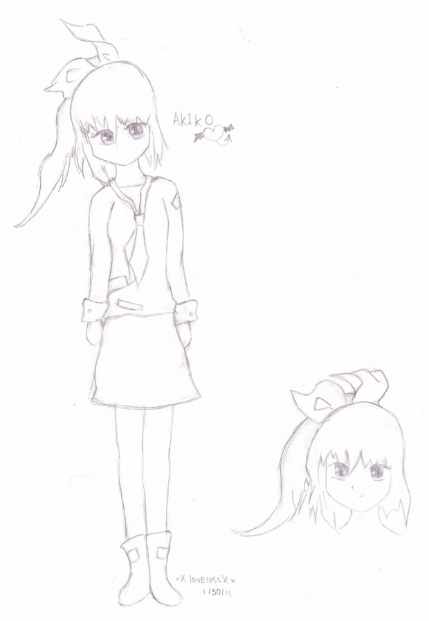 my third artwork!! yay; i think i'll stop counting >.< anyway, this is my OC! her name's Akiko and she's sort of the rebellious type... but i think she's so cute! hope you like it! ^___^