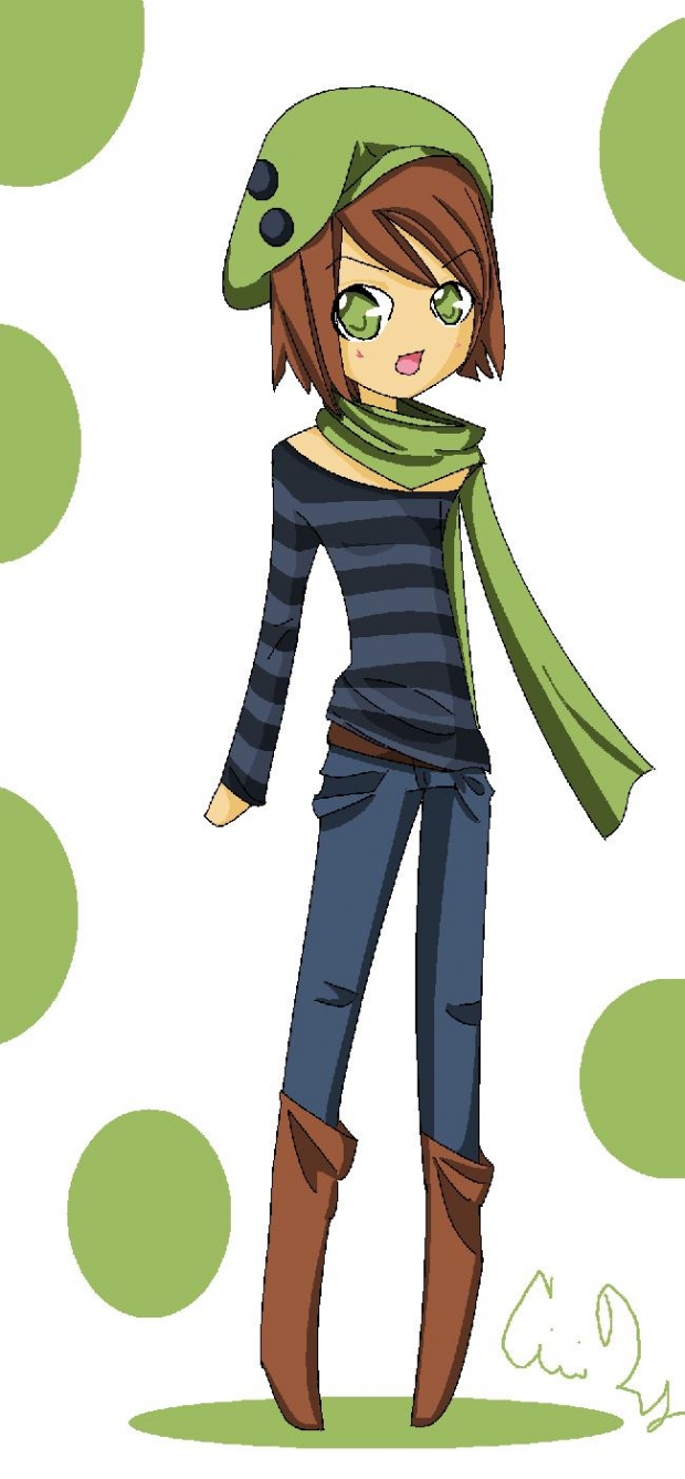 - >:d, blue, boots, bubble, bubbles, cool, cute, girl, green, hat, kawaii, oc, scarf, stripes, style, sweet