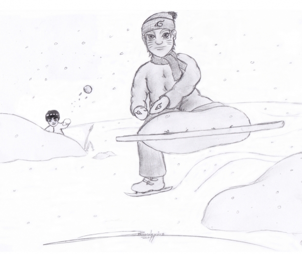you see, at first; Rock Lee went out on the ice with his weights on... Laughing at him climbing out of the freezing water, Naruto gained an enemy-for-the-day in Rock Lee.