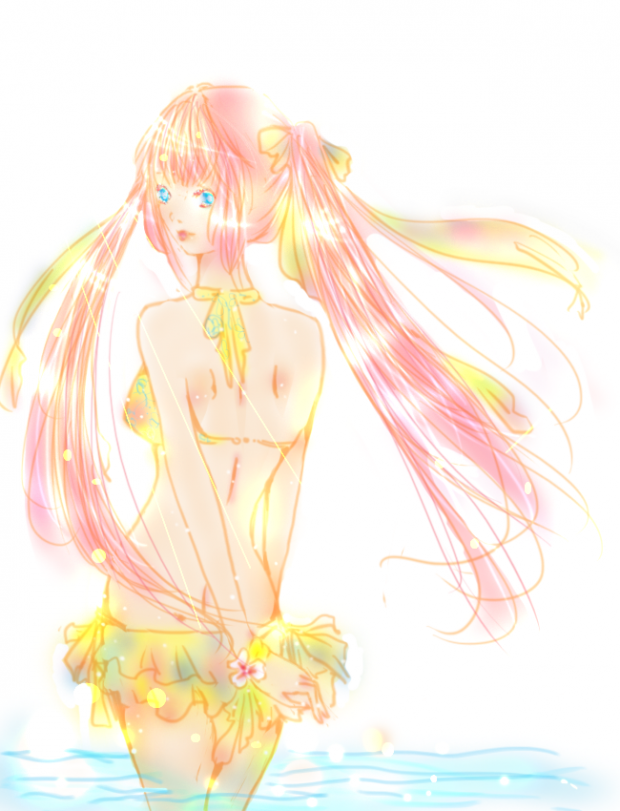 I was just trying to find ways to improve the bodies so that was quite hard and still she's wearing a skirt because I couldn't just draw the other half of her swimsuit...Haha!By the way I thought that pink and yellow make a very good combination for the summer.