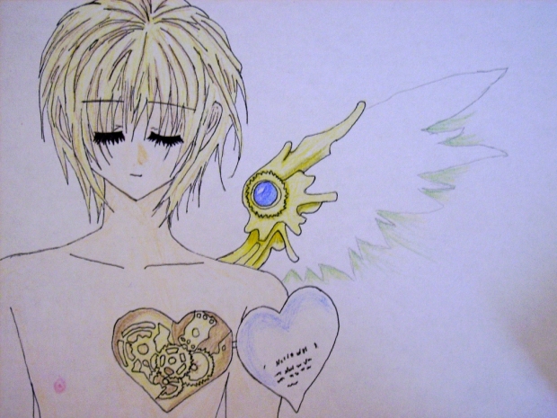 - angel, Ayase, heart, mechanical, one-winged