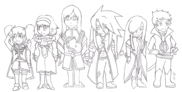 From left to right(for those who don't know them):Anise,Natalia,Jade(he is a MAN),Luke,Tear and Guy.