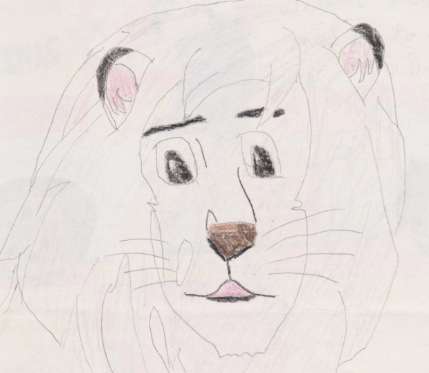 A left-handed drawing I put on the inside of my religion teachers card... We had a discussion one day of anime he watched growing up and he watched leo the white lion in France... so hence the french title ;)