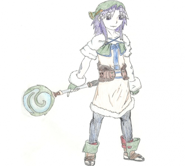 ok so as winged and i got the idea of drawing our oc's in crystal chronicles styles, we actually did really good copying the styles, this is the boss in his version of the headband selkie outfit, i shortened his bangs for the pic so he looked more selkie, i have yet to finish Sabriela's 1, and i may edit this later,