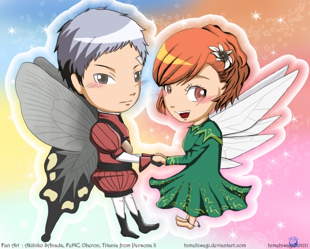 - akihiko, Akihiko Sanada, FeMC, Hamuko, Minako Arisato, Oberon, P3, P3P, Persona, Persona 3 Portable, Titania