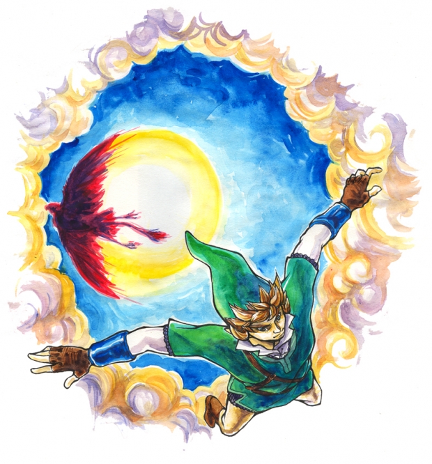 Dedicated to MangaKid - thanks for your contributions to 25 Years of Legend of Zelda! I really appreciate it. This, of course, is a pretty standard tribute to one of my favorite activities in Skyward Sword - diving! I learned a few things from this piece, including, don't bother trying to draw clouds without references. Draw and learn!