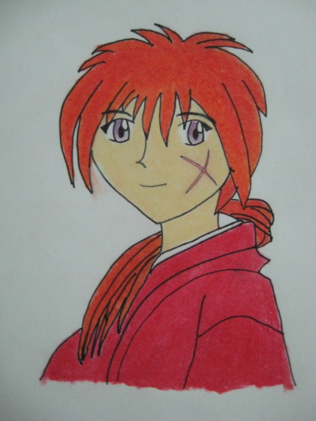 This is my drawing of Kenshin Himura from Rurouni Kenshin. Admittedly, I had a hard time drawing him since the character design is a bit more detailed than what I'm fond of drawing. Also, I made an error with the ear (which no longer looks like an ear) and I accidentally colored beyond the lines. Still, I think this drawing looks good in general.