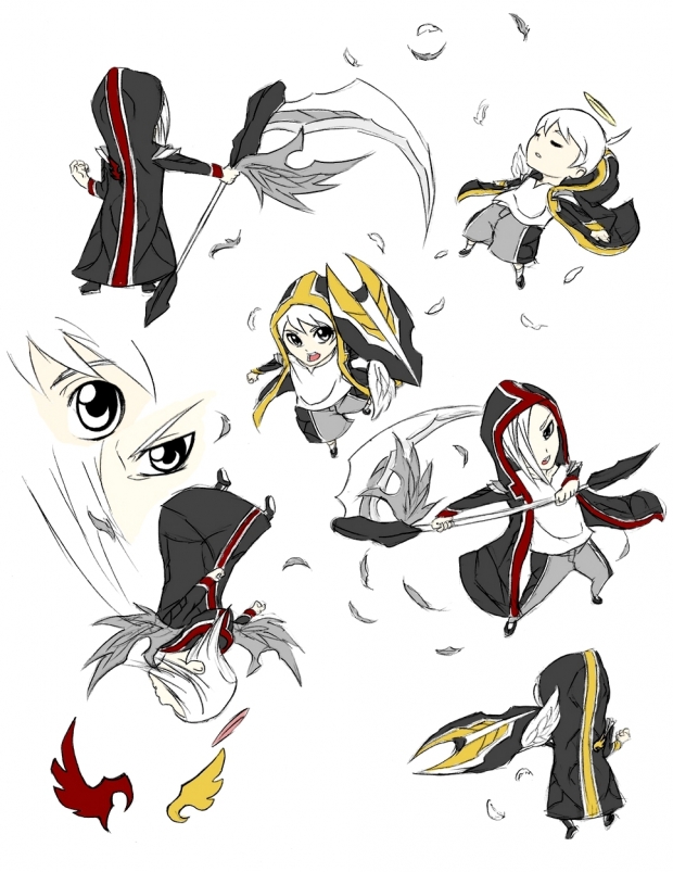 - character, chibi, feather, original, scythe, sd, shield, sketch, wing