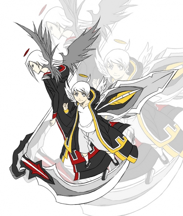 - angel, black, character, original, scythe, shield, sword, wings