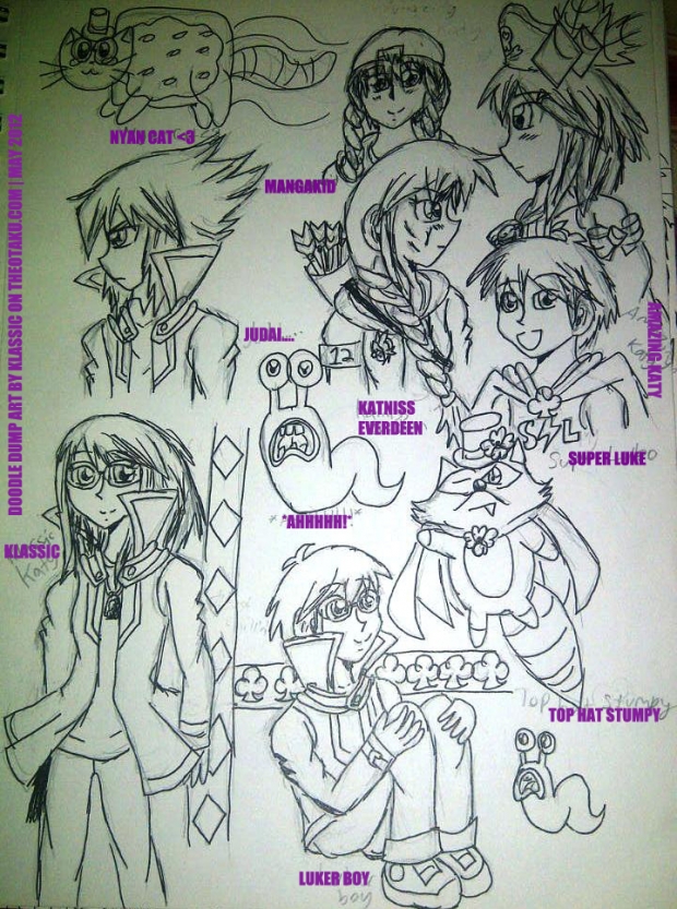 - amazing katy, doodle dump, hunger games, judai, katniss everdeen, klassic, mangakid, nyan cat, random, slugs, super luke, yugioh gx