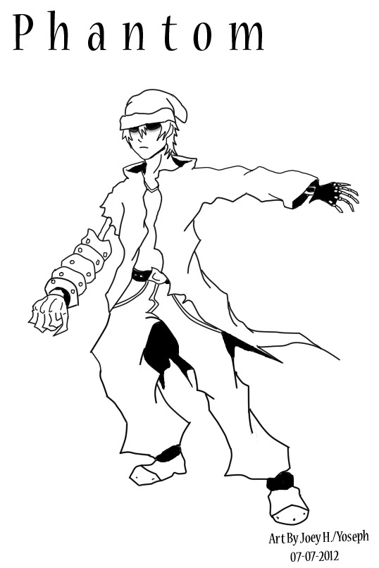 I'm startin to get the hang of the pen tool in Paint tool sai ^_^ I actually designed this character while i was at work XD(Cuz im that awesome at my job)and when i got home scanned it and did the lineart. Anyway this character needs a name, any suggestions? Or should i just call him phantom XD Well hope you'z like, and happy Saturday :D