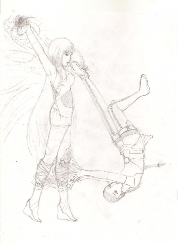 So I am making this comic with my friend and this is one of the fight scenes for it. Hope you like it ^^. Just so you know the one on the bottom is shooting ice and the one at the top is supposed to be shooting fire or something. ![]()