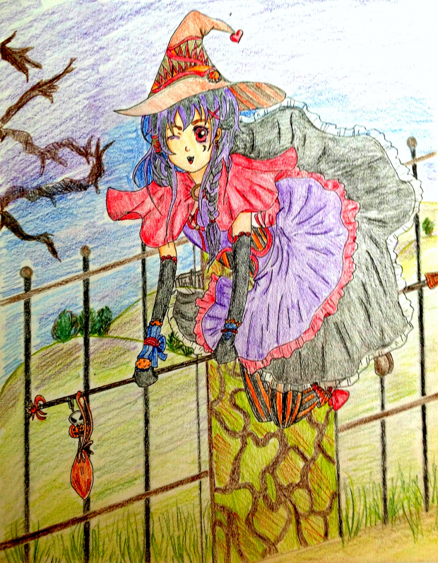 My OC Alice from the MCC (a vampire). She decided to dress up as a witch for Halloween. :) She's on a green screen cuz she has no flying ability haha!