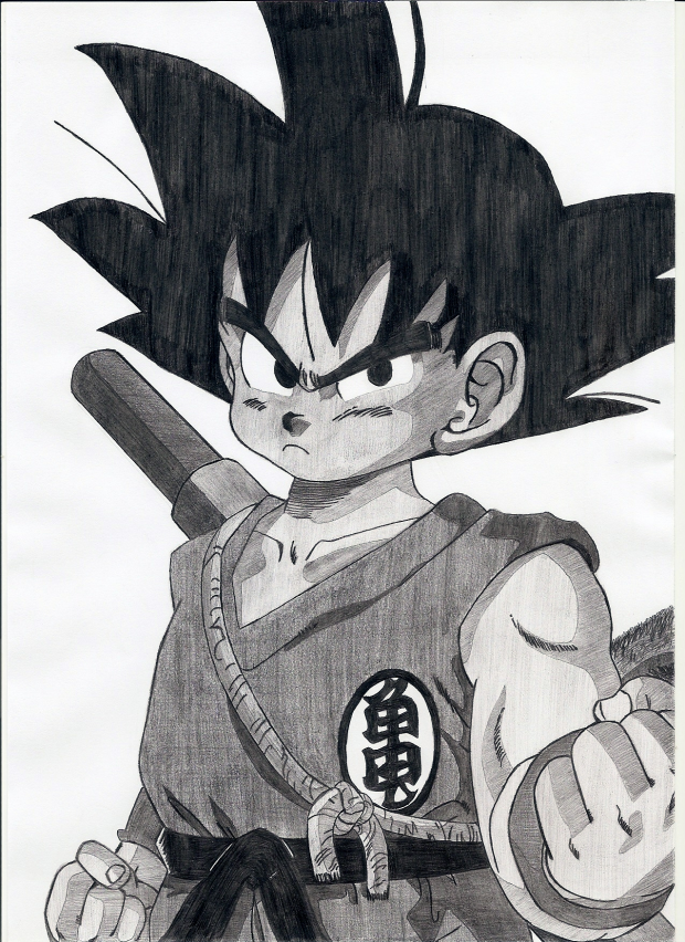 Goku from Dragon Ball, just about to fight Demon King Piccolo.