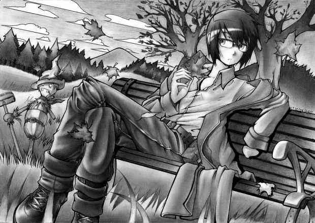 - autumn, fall, journey, kino, leaves, no, november, october, scarecrow, tabi, trees
