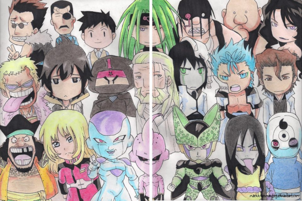 - aizen, blackbeard, burrel, buu, cell, doflamingo, envy, father, freeza, gang, gluttony, greed, grimjow, lust, majin, obito, orochimaru, pride, ray, sloth, tobi, ulqiorra, warumo, wrath, za, zeref