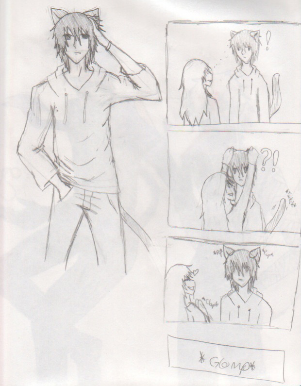 This is my OC Hei (Hee-a) Nightray as a Neko and I just did a little comic on the side of liveeverysecond's character Katara May and Hei.