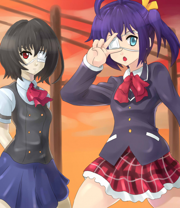 another cross over pic mei misaki (another) and rikka takanashi(Chuunibyou demo Koi ga Shitai) just decided to draw them togehter since they have one thing in common "eye patch". there some mistakes as usual and please i would really like to know everyone's opinion on this.