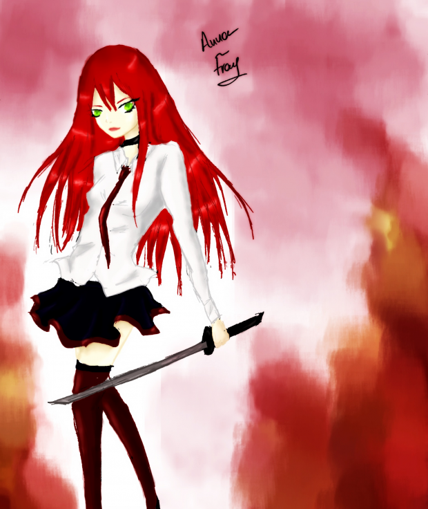 - Anna Fraym, Evalinna, Fire, girl, OC, red, sword