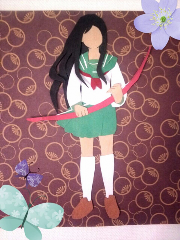 I made another one! this time Kagome. it's really hard to cut tiny pieces of paper with the scissors I have -_- but whatever I'm doing this stuff at work.