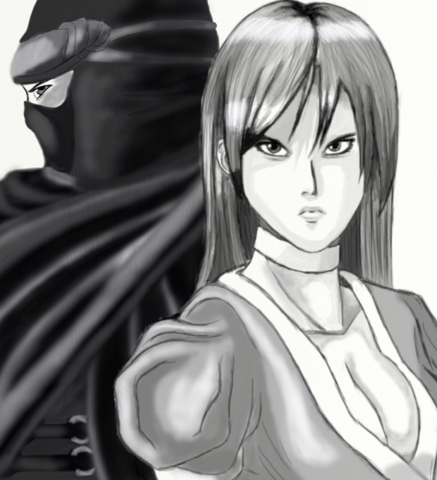 for my black and white entry, I chose my drawing off hayabusa and kasumi from dead or alive. hope you like